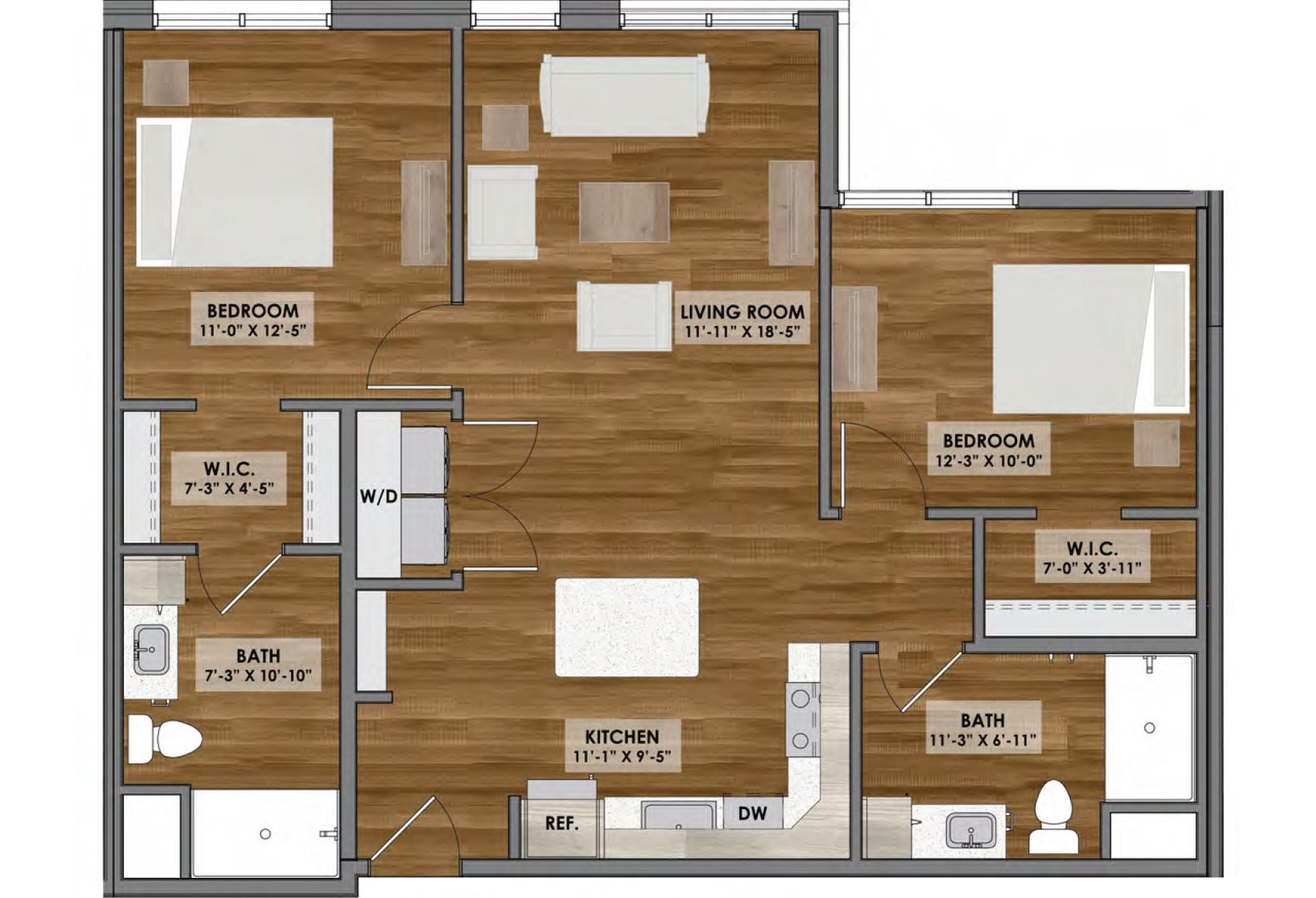 The two-bedroom, two-bath apartment at Station 955 offers added space and privacy, making it ideal for roommates or those seeking extra room. Each bedroom includes its own bathroom, one is an en-suite, while the other is disconnected. Shared living spaces provide flexibility for daily living and entertaining. Thoughtfully designed layouts and storage make this home both practical and comfortable. Residents enjoy community amenities including a fitness center, business center, and community room, along with responsive on-site management. Centrally located in Eau Claire, Station 955 keeps you close to local conveniences.